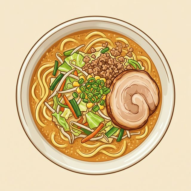 - スープを力強く受け止める「多加水の中太ちぢれ麺」 : 味噌の力強さに負けないよう選ばれた、プリッとした食感の特製麺。スープとよく絡み、麺を啜るたびに味噌の香りが鼻を抜け、噛み締めるほどに小麦の旨味が広がります。
