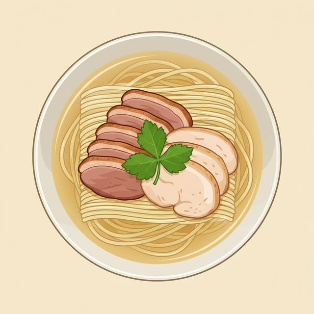- 透明度の向こう側に広がる「深淵なる清湯スープ」 : 地鶏、ブランドポーク、そして数種類の乾物。それぞれの旨味を極限まで抽出しながらも、雑味を一切排除したスープは、透き通るような美しさと、身体の芯まで染み渡る圧倒的な奥行きを兼ね備えています。
