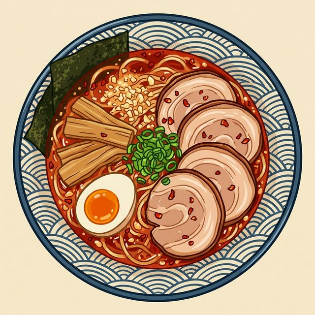 - 「焦がし背脂」の芳醇な香り : 丁寧に焦がした背脂が浮かぶ醤油スープは、香ばしさと奥深いコクが共存し、平打ち麺特有のもちもち食感を引き立てます。