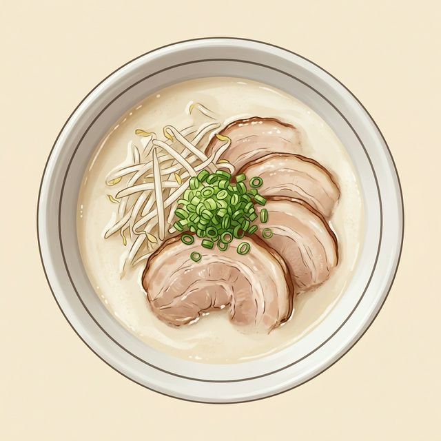 - 店舗2階で製麺する自家製の極太ワシワシ麺と、醤油がキリッと効きつつもマイルドな、飲みやすい豚骨スープが自慢。