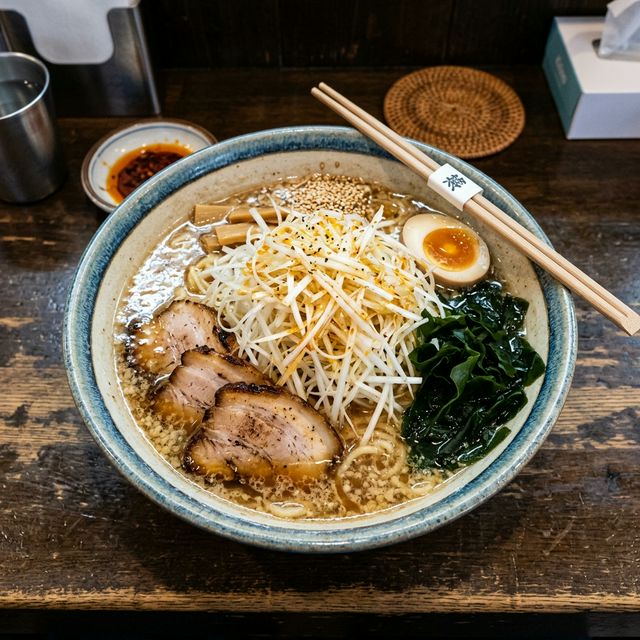 - 恒久エリアが誇るカリスマ的名店。確実に食べるなら開店30分前の到着を強くおすすめします。基本の「ラーメン」に卓上のトッピングで自分好みの味を見つけるのが楽しみ方。人手不足等の影響でメニューが制限されることもありますが、そのスープのクオリティだけで全ての不満を黙らせる圧倒的な力がこの店にはあります。