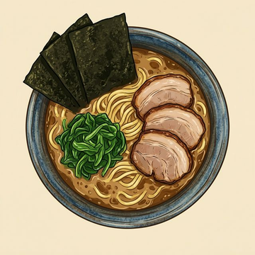 - 豚骨と醤油のコクにアゴ出汁の魚介風味を加え、家系ながらもあっさりとした独自の味わい